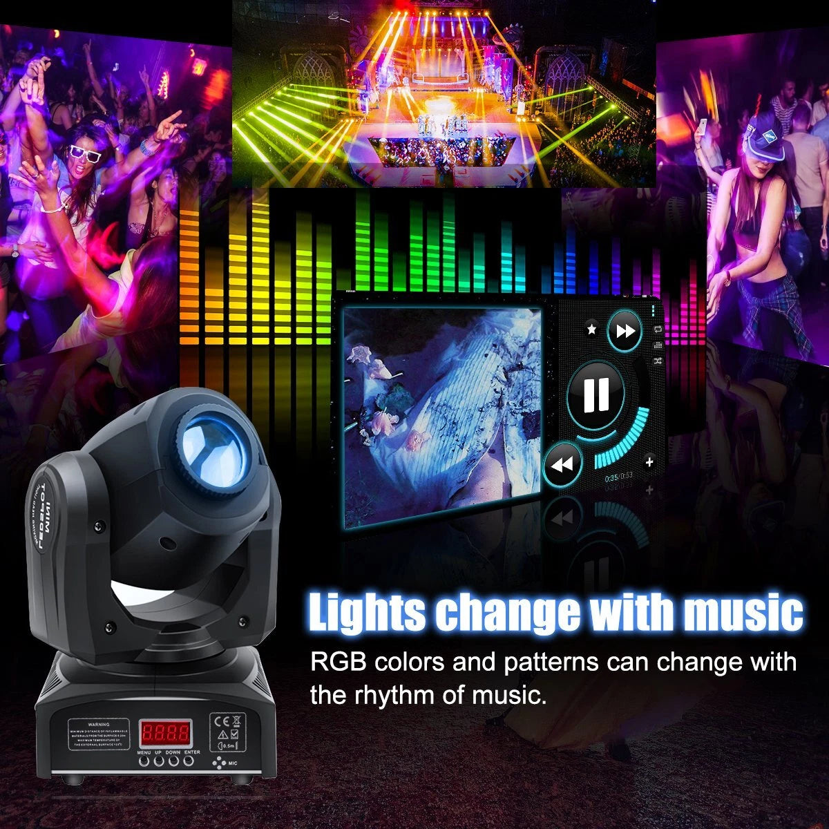 Mini LED 30w Beam Moving Head Light DMX Disco DJ Party Gobo Light